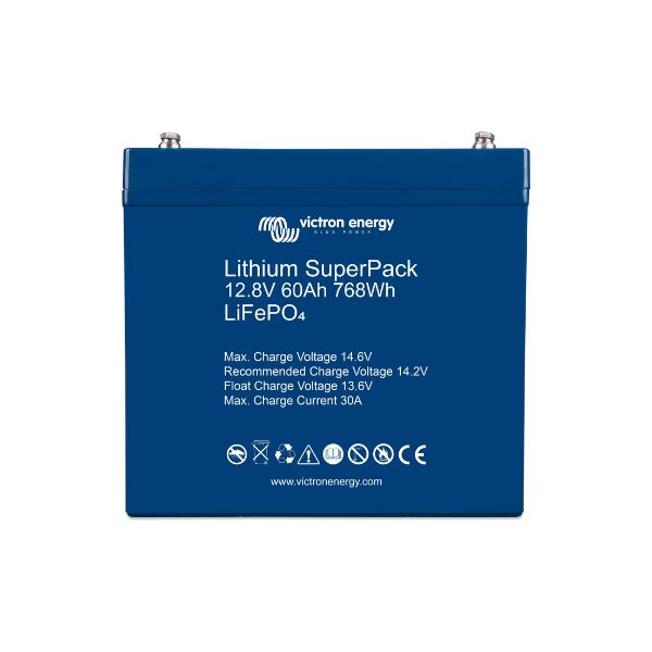 Η μπαταρία Victron Lithium SuperPack 12.8V/60Ah αποτελεί μια αξιόπιστη και εύχρηστη λύση αποθήκευσης ενέργειας, σχεδιασμένη για άμεση εγκατάσταση χωρίς την ανάγκη πρόσθετων εξαρτημάτων ή εξωτερικού BMS.