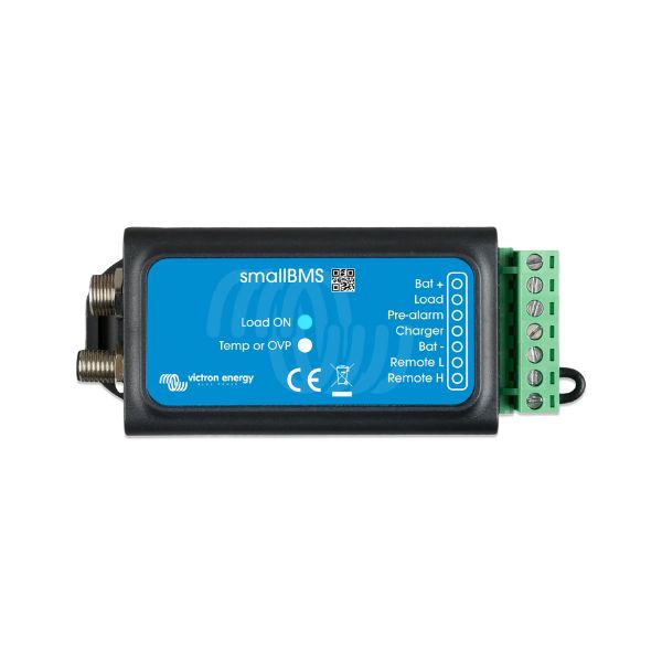 Είναι σχεδιασμένο για χρήση με μπαταρίες Victron Smart LiFePO4 που διαθέτουν κυκλικούς συνδέσμους M8. Το smallBMS παρέχει δύο εξόδους, παρόμοιες με αυτές του VE.Bus BMS V2, για τη διαχείριση φόρτισης και φορτίου, προσφέροντας βασική προστασία των μπαταριών από υπέρταση και υπόταση.